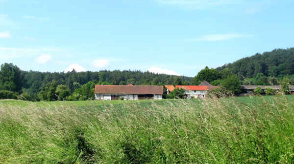 Gut Waldhof liegt ca 2 km von Elbenberg, abseits vom Straßenverkehr, inmitten von Wiesen, Feldern und Wald