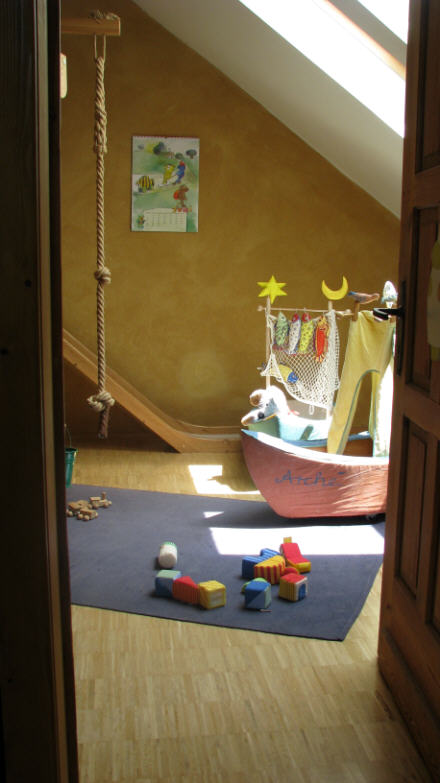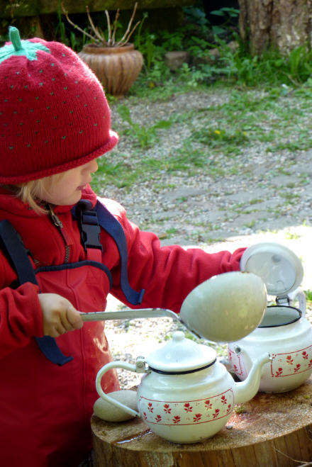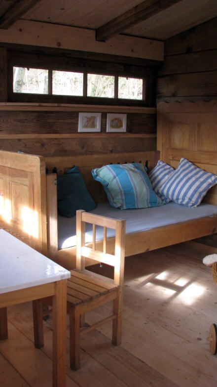...im Gras sitzen, im Wolkenschiffchen träumen, im “ Sommerhäuschen “ Mutter, Vater, Kind” spielen, hoch hinaus schaukeln, im Sandschiff Kapitän oder Pirat spielen, im Wald Holz suchen, in der “Schneckenkiste” werken oder Zwerge schnitzen ,......